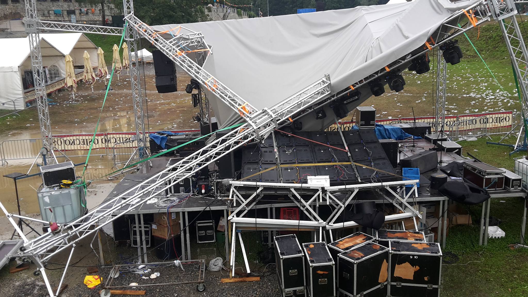 kao što ste već mnogi mogli vidjeti, jak vjetar i kiša noćas su nam srušili glavnu pozornicu na Piknik Stageu i primorani smo na našu najveću žalost otkazati sve preostale koncerte.