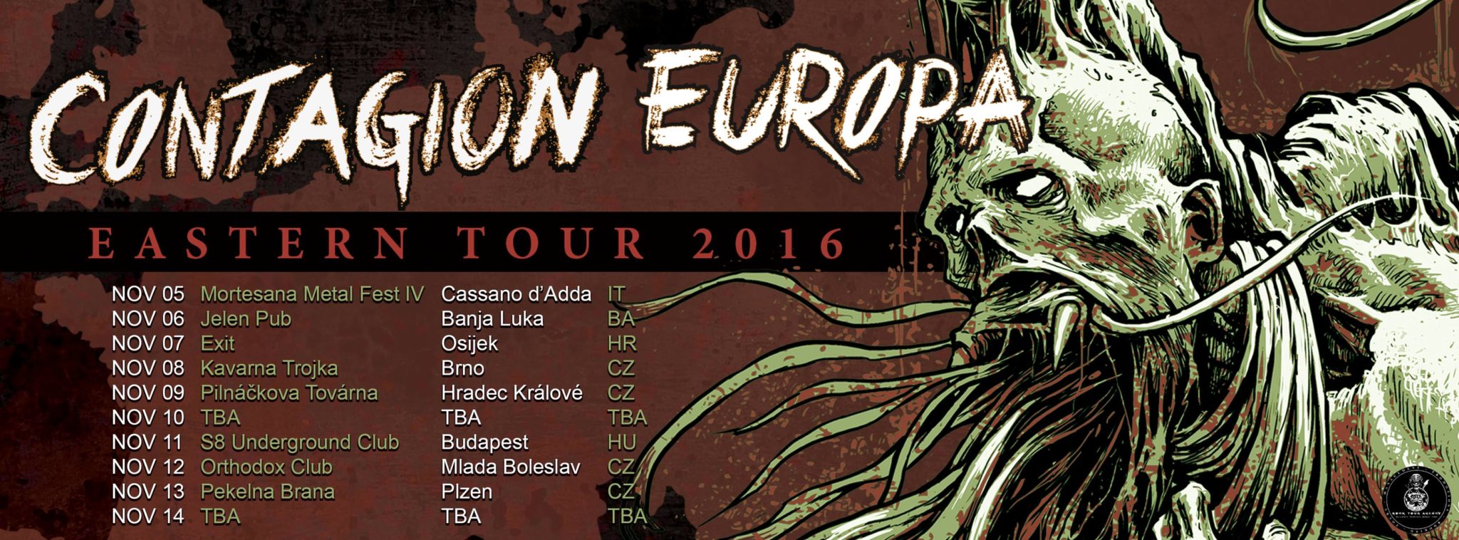 Francuski ekstremni metalci Eradikal Insane će, uz potporu domaćeg osjećkog sastava Ewoya, zasvirati u osječkom klubu Exit 7. studenoga, povodom njihove europske turneje Contagion Europe.