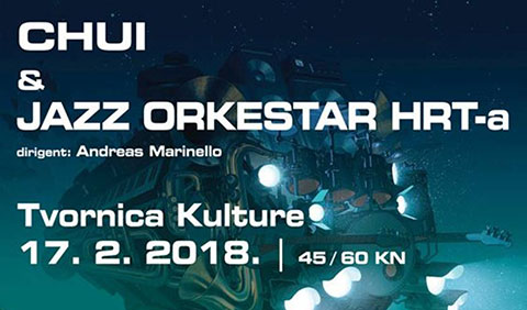 Chui i Jazz orkestar Hrvatske Radiotelevizije predvođeni dirigentom Andreasom Marinellom sviraju u Velikom pogonu Tvornice kulture 17.2. u sklopu promocije albuma Chui ovu glazbu koji je prošle godine bio jedan od najboljih hrvatskih studijskih uradaka.