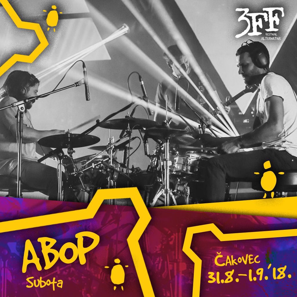 ABOP je audiovizualni sastav koji izvodi Crossover raznih stilova elektroničke glazbe samo što na pozornici nije DJ nego pet vrhunskih glazbenika! Bend koji umjesto frontmana ima dva bubnjara, zapravo je živa ritam mašina, a oni sjede jedan nasuprot drugoga te udaraju u isti bas bubanj, dok oko njega grade ostatak bubnjarskog seta s obje strane. Zašto je “After Bolji Od Partyja” provjerite u subotu 01.09. kada će vas dečki natjerati da plešete do jutra.