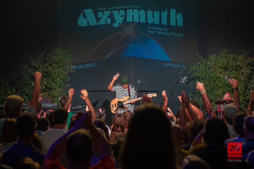 Koncert Azymutha tako je sjajno došao kao šlag na polugodišnju tortu, obzirom da se svakako očekuje ljetni s eventima, barem što se tiče Zagreba. Službeni povod ovom druženju je 50. obljetnica postojanja grupe, iako bi bilo pošteno reći da se ovdje radi od trećini slavnog trija. Naime, klavijaturist Roberto Bertrami preminuo je 2015. godine, dok je prije mjesec dana preminuo Ivan Conti, bubnjar i perkusionist. Alex Malheiros, basist i gitarist, službeni frontmen sastava koji u mikrofon samo pokatkad nešto chanta i povremeno se obraća publici, bio je na rubu da cijelu turneju povodom 50. rođendana benda otkaže. No, dogodilo se suprotno, turneju je odlučio održati u čast preminulom Mamaou, kako su Contija zvali.