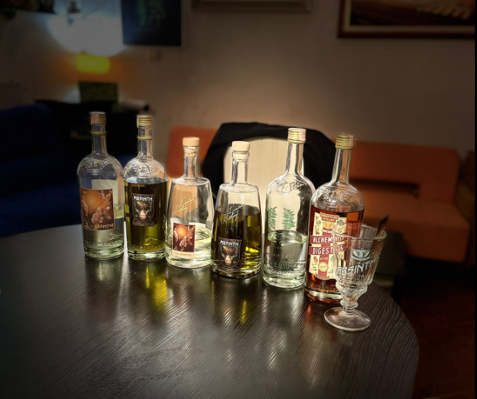 Svi proizvodi Kyleove destilerije, ponajprije absinthe, rađeni su od biljaka koje se nalaze na njegovoj farmi u Češkoj gdje se nalazi i likerka, pojašnjava Daniel. Radi ih se starim metodama poput maceracije i filtracije te sadrže planinsku izvornu vodu s 900 metara nadmorske visine bez aditiva ili boja. Dvije temeljne iteracije absinthea dolaze u dvije boje – bijeloj (blanche) i zelenoj (verte).