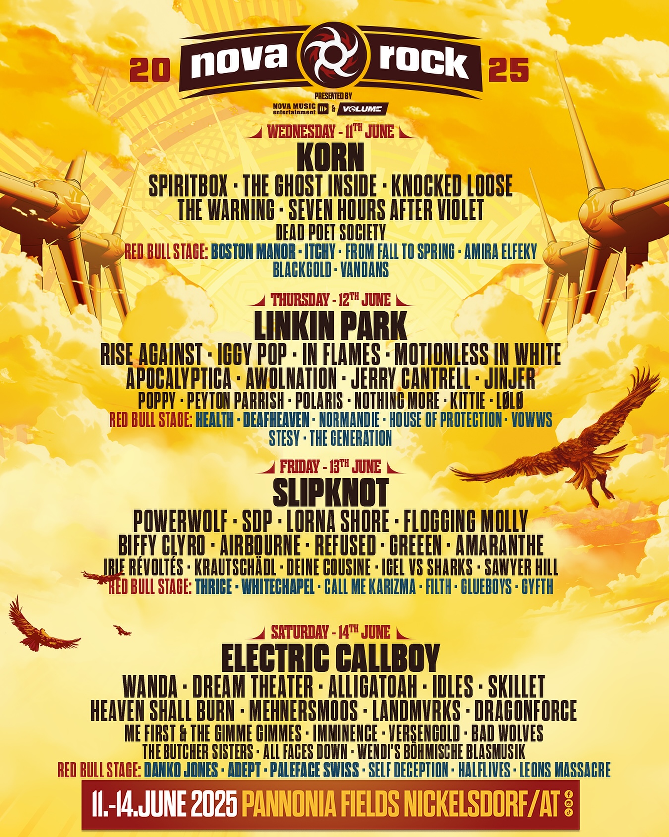 Nova Rock Festival, koji će se održati od 11. do 14. lipnja, i ove godine na panonske poljane poziva odličnom postavom s bendovima poput Korna, Slipknota, Linking Parka i drugih.