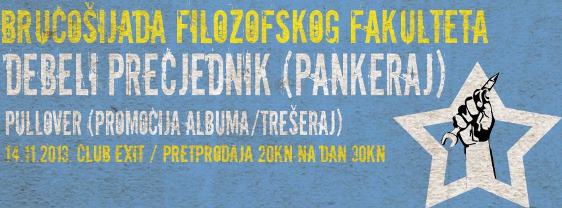 U četvrtak, 14. studenoga održala se brucošijada Filozofskog fakulteta u Exitu. Kroz ostatak izvještaja nećemo ovaj događaj referirati kao brucošijadu jer, po autorovu mišljenju, brucoša smo rijetko vidjeli (oni brucoši koji su bili slobodno neka popljuju ovaj članak, bit će nam drago što mladi ljudi prisustvuju ovakvim događajima).
