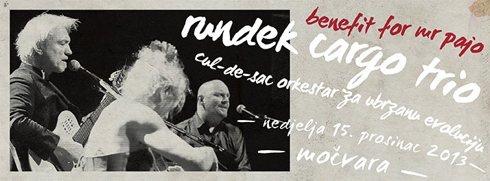 Koncert je zamišljen da bude kabaretskog tipa gdje će majstor ceremonije biti Vili Matula. Očekuje vas fantastičan spoj Rundek Cargo Tria i Cul-de-Sac Orkestra za ubrzanu evoluciju, koji će u prvom dijelu kabarea zajedno, u raznim kombinacijama i pojačani originalnom brass sekcijom Haustora, izvoditi Rundekove pjesme (Zvuk oluje, Ena, Put u sumrak…. Šejn, Apokalipso, Duhovi), dok će se u drugom dijelu programa Trio priključiti Cul-de-Sac orkestru za ubrzanu evoluciju…