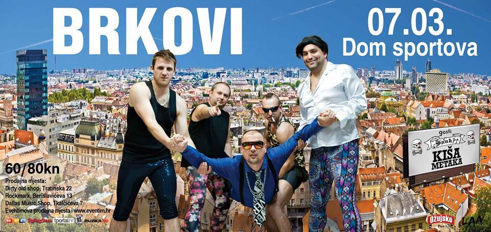 Poznati domaći folk punkeri, zagrebački Brkovi, održat će u dvorani Doma sportova 7. ožujka veliki koncert. Povodom istoga, odabrali su dva benda koji će im pružati potporu na bini, a to su prijateljski bendovi – zagrebački punkeri Šank?! te splitski reperi iz Kiše metaka!