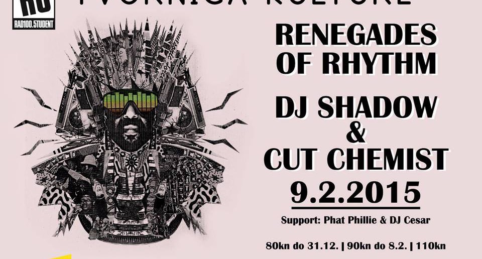 Dvojac svjetski poznatih DJ-eva, DJ Shadow i Cut Chemist (Jurrasic 5) nastupit će ovaj ponedjeljak,9. veljače u Tvornici kulture.
