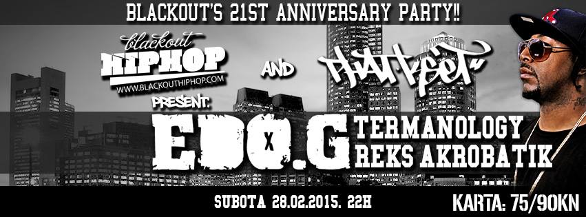 Povodom nešto kasnije proslave 21. rođendana Blackout Radio Showa, jednog od eminentnijih hip – hop projekata u Europi koji je nastao kao suradnja DJ Phat Philliea (Fresh Island festival) i DJ Frxa još 1993., u prostoru zagrebačkog kluba KSET, održat će se 28. veljače koncert etabliranih američkih rap izvođača – Termanology, Reks, Akrobatik, Edo G i to u sklopu The E.S.T. Toura.
