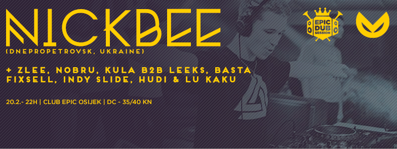 Zajednička suradnja Epic Dub Session udruge sa VuBass kolektivom postigla je dogovor o gostovanju NickBee-a, ukrajinskog producenta i DJ-a koji važi za jednu od najvećih nadolazećih zvijezda drum ‘n’ basss scene, i to ovaj petak, 20. veljače u osječkom klubu Epic.