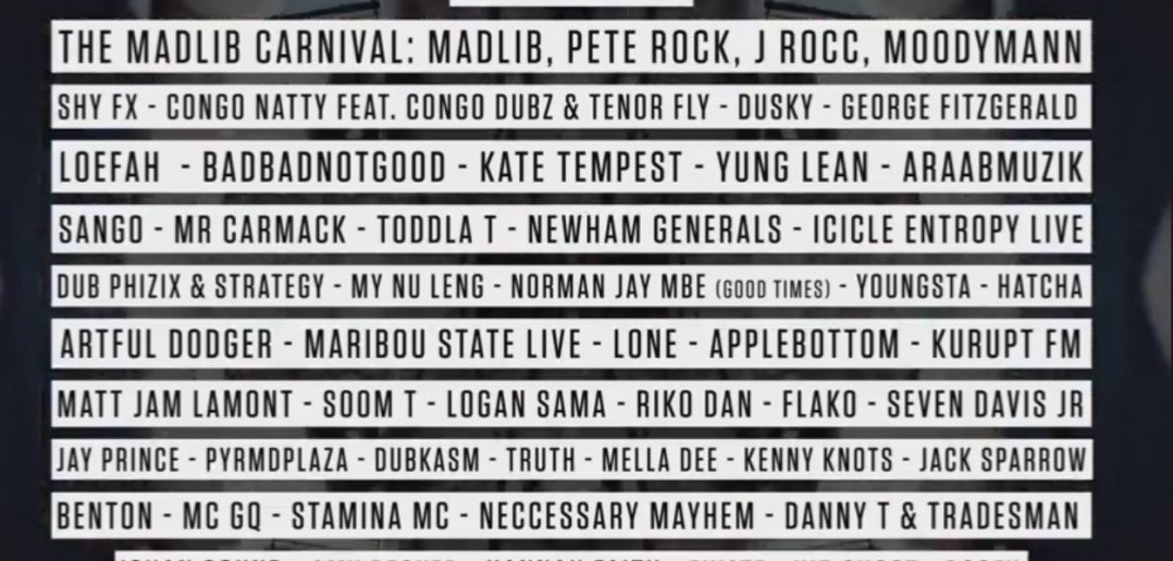 Oni će se pridružiti do sada objavljenim izvođačima: Run The Jewels, Boy Better Know, Wiley, Noisia, Flatbush Zombies, Jeru The Damaja, The Beatnuts, Digital Mystikz, DJ EZ, Goldie, Mount Kimbie (DJ set), Cutty Ranks, David Rodigan, Protoje & The Indiggnation, Tippa Irie uz mnoge druge.