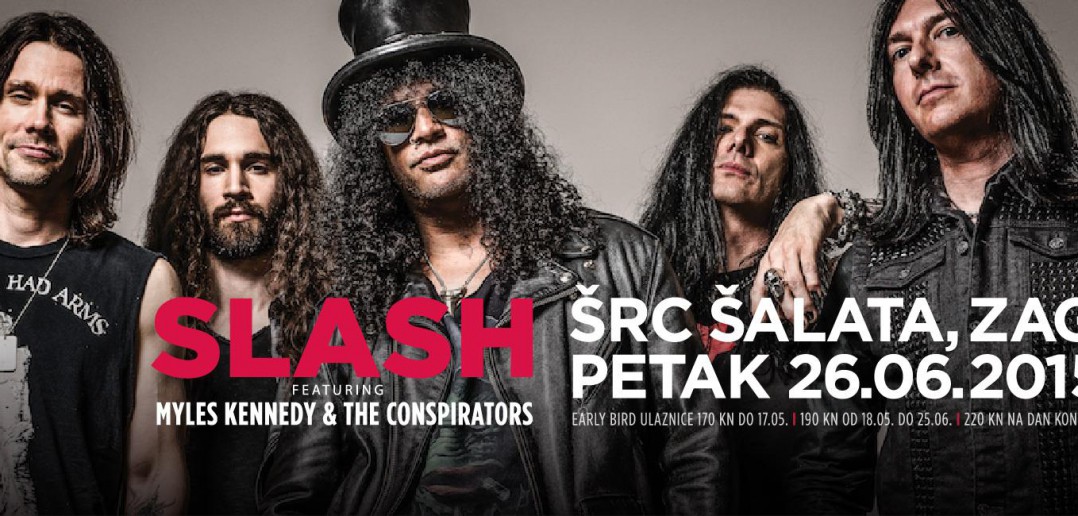 „ Slash, jedan od najvećih rock gitarista u povijesti, motor legendarnih Guns’n’Roses i autor mnogih bezvremenskih riffova, nastupit će praćen Myles Kennedyjem i grupom The Conspirators na zagrebačkoj ŠRC Šalati u petak, 26. lipnja.