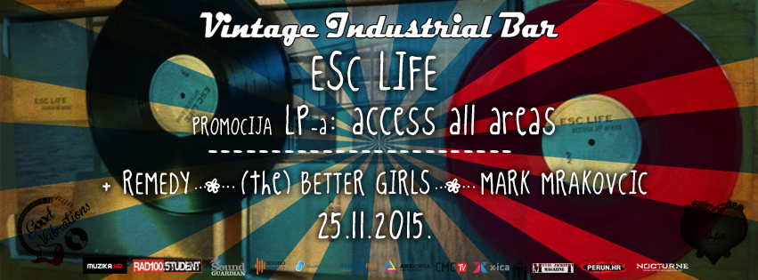 25. studenog u zagrebačkom će Vintage Industrial Baru grupa ESC Life održati promociju svog albuma Acess All Areas. Našu recenziju albuma pročitajte OVDJE, a uz ESC Life svirat će i austrijska grupa Remedy, bend iz Graza/Beča nastao 2011. godine, zagrebačka grupa (the) Better Girls te Mark Mrakovčić, uz residenta DJ Knežu na kraju.