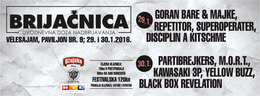Kao što smo već najavili, festival Brijačnica novi je glazbeni festival koji se održava 29. i 30. siječnja na Zagrebačkom Velesajmu, u paviljonu br. 9. Za dvodnevno brijanje zaduženi su Goran Bare & Majke, Partibrejkersi, Repetitor, Disciplin A Kitschme, Black Box Relevation, Kawasaki 3p, M.O.R.T., Superoperater i Yellow Buzz.
