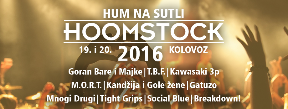 Festival Hoomstock koji se ove godine održava po 11. puta (19. i 20. KolovozaHum na Sutli) s tri nova imena zaključuje line-up za ovu godinu. Majkama, TBF-u, Kandžiji i Golim ženama, M.O.R.T.-u, Gatuzu, Breakdown!-u i Social Blueu, pridružuju se još Kawasaki 3p, Mnogi Drugi i Tight Grips.