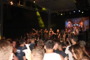 Slušavši One Step Away sa stepenica pored ulaza bio sam fasciniran njihovim međusobnim spominjanjima majki i autokritičnosti prema Varaždinu i Koprivnici, odakle sastav i vuče svoje korijene. Naravno, sve to u svrhu dobre zezancije i s dobrim namjerama. Zanimljiv i vrlo, vrlo glasan punk zvuk koji je zaglušio jezero. Možda to posjetitelji unutra nisu bili svjesni, ali kada je nakon njih na pozornicu stala splitska Kiša Metaka, dobio se dojam da pjevaju kroz vodu naspram svojih prethodnika. Splitski rep peterac Kiša Metaka uvodi priču s pjesmom Konan, a slijede i stvari poput Pljačkam turiste, Drei Millionen, Mejaši itd. Oko 21:15 starosjedioci Ferragosta, bend MTDE (Muscle Tribe of Danger and Excellence) polako uvode priču za ono što će biti najposjećeniji koncert festivala – Josipu Lisac.