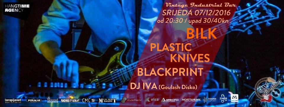 Program Good Vibrations u Vintage Industral Bar-u uvijek se dičio odličnim koncertima, a za 7.12. su nam pripremili elektronsku/trip hop večer. BILK i Plastic Knives vas tjeraju na ples, a projekt Blackprint premijerno predstavlja svoju viziju ispreplitanja trip hopa s future jazzom i hip hop elementima. Nakon bendova tulum privodi kraju DJ Iva s Goulash Disko festivala.