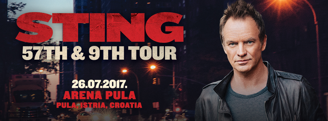 Kao što je najavljeno prošli tjedan, jedan od najvećih engleskih glazbenika Sting dolazi u Hrvatsku, točnije u pulsku Arenu, gdje će nastupiti 26. srpnja 2017. godine u sklopu turneje 57th & 9th. Na turneji 57th & 9th Stingu će se pridružiti tročlani bend uključujući i njegovog dugogodišnjeg gitarista Dominica Millera, bubnjara Josha Freesea te gitarista Rufusa Millera.