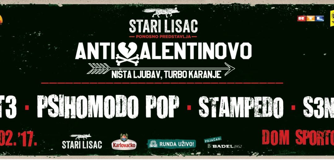 Nakon odlično posjećenog prošlog AntiValentinova, ove godine svirat će riječka grupa Let 3, legendarni rockeri Psihomodo Pop, Stampedo Ivanke Mazurkijević te mlade nade S3ngsi.