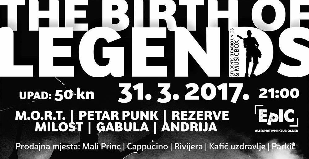 The Birth Of Legends – naziv je humanitarnog koncerta koji će se održati u osječkom alternativnom klubu Epic 31. ožujka, na kojemu će nastupati čak šest glazbenih imena iz različitih krajeva.