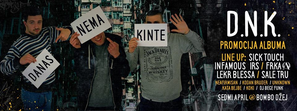 Sinoć je u klubu Bombo Džej mlada beogradska rap ekipa D.N.K. održala promociju svoga albuma Ništa više. Pred većim brojem publike momci iz ove ekipe izveli su pjesme sa toga projekta kao i neke zajedničke stvari sa gostima koji su došli iz različitih gradova Srbije.