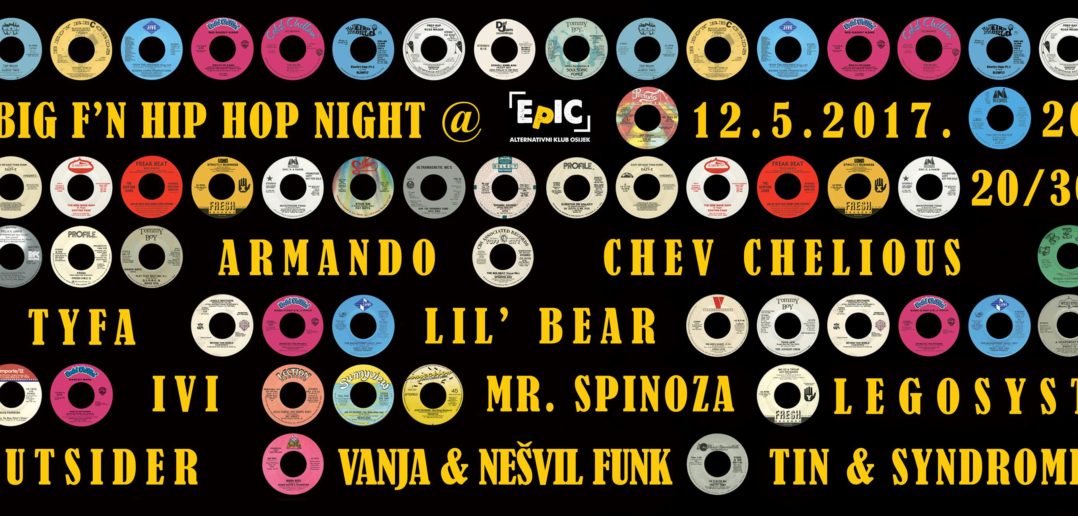 U osječkom alternativnom klubu Epic održat će hip-hop večer naziva Big F’n Hip Hop Night s brojnim izvođačima iz Osijeka, Našica i Vinkovaca, a datum održavanja je 12. svibnja.