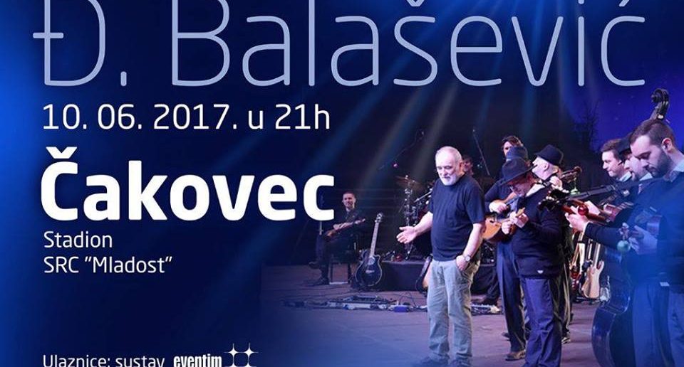 Nakon rasprodanih koncerata u Puli i Zagrebu, došao je red i na sjever Hrvatske, točnije Čakovec. Stadion SCR Mladost u Čakovcu će 10. lipnja ugostiti jednog od najpoznatijih kantautora i pjesnika ovih prostora, Đorđa Balaševića. Poznat po svojim romantičnim baladama, popularni Đole nesumnjivo će i ovoga puta oduševiti publiku svojim nastupom koji ponekad zna trajati i preko tri sata.