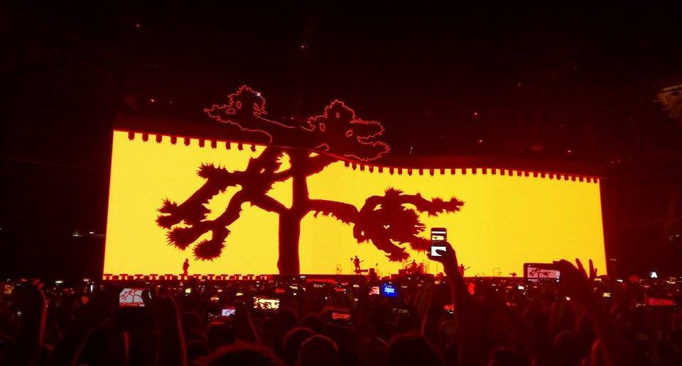 U gotovo klupskom „štimungu“, bez ikakvih pratećih video i audioefekata, uslijedila su još tri hita na maloj pozornici – New Year’s Day, A Sort of Homecoming i Pride (In The Name of Love) – a onda su prešli na onu veliku. Tada se pali zasljepljujuća golema crvena pozadina iza svijetleće poznate siluete Joshua Tree, koja sa scene, poput pravog drveta, izbija u zvjezdano nebo. „U igru“ ulaze i zbilja spektakularne ultra HD projekcije njihova starog suradnika Antona Corbijna na 61 metara dugačkom i 20 metara visokom LED ekranu koji se proteže cijelom dužinom pozornice. Do kraja koncerta kombiniraju se svjetlosni efekti i ranije snimljene sekvence s prikazivanjem članova benda pomoću više kamera i iz različitih kutova na velikom videozidu, ali na poseban, faktički filmski način. U2, koji je oduvijek puno polagao na vizualni ugođaj, ovaj put, čini se, podignuo ga je na još višu razinu.