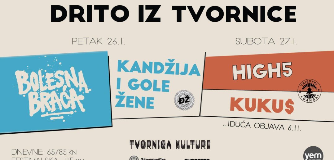 Drito iz Tvornice, zimska hip-hop manifestacija koja početkom iduće godine doživljava svoje treće izdanje, dovodi dva nova imena – svima znan duo iz Bolesne Braće i zagrebačku trap ekipu Kuku$.