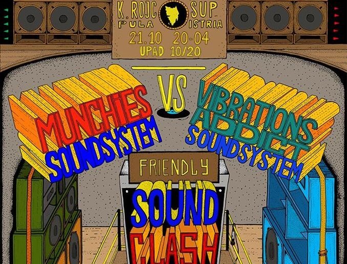 Pod zajedničkim nazivnikom friendly ove subote održat će se prvi istarski Soundclash. U plavom kutu iza istobojnog sounda predstavit će se Vibrations Addict Soundsystem, a nasuprot njemu, u zelenom kutu, nestrpljivo čekaju Munchies Soundsystem. The Anunnaki Selektor i Teddy Lee pobrinut će se za zagrijavanje i uvodi trening.