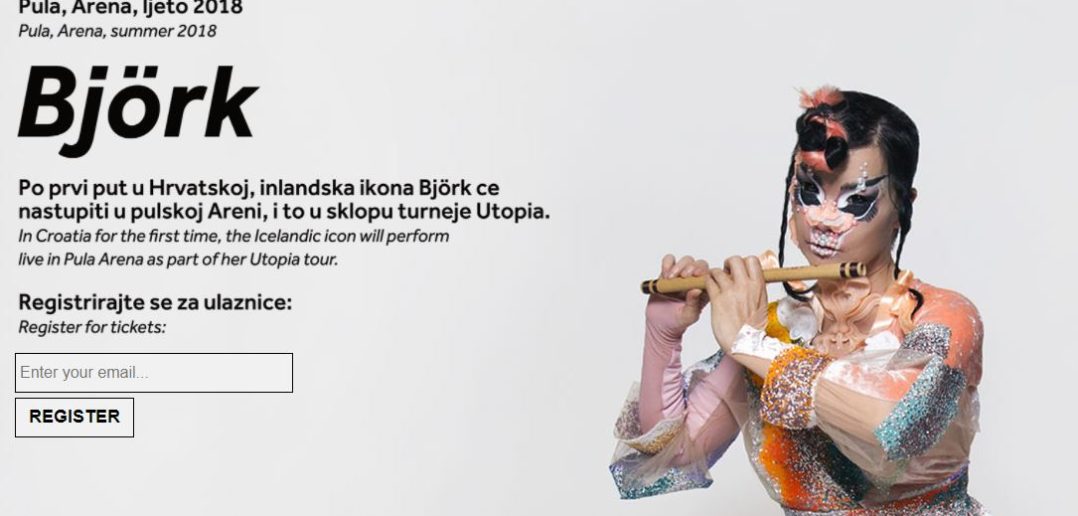 Legendarna islandska pjevačica, kantautorica i glumica Björk nastupat će na ljeto 2018. godine u Hrvatskoj, ako je suditi po nedavno osvanuloj web stranici wwwbjorkincroatia.com.