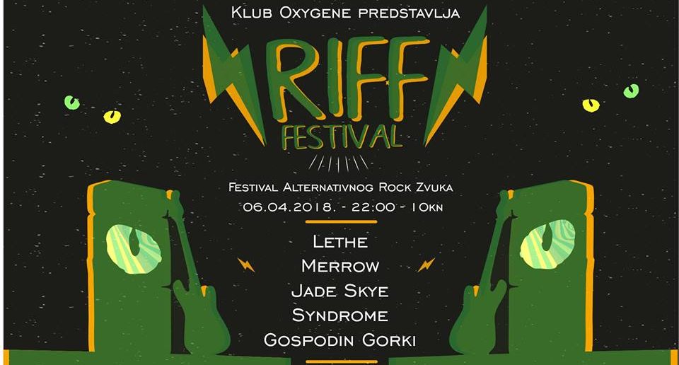 Riff je naziv za festival alternativnog rock zvuka, a u jednoj večeri, 6. travnja, okupit će pet osječkih bendova: Lethe (koji će predstaviti debitantski album ‘Control’), Merrow, Jade Skye, Syndrome i Gospodin Gorki.