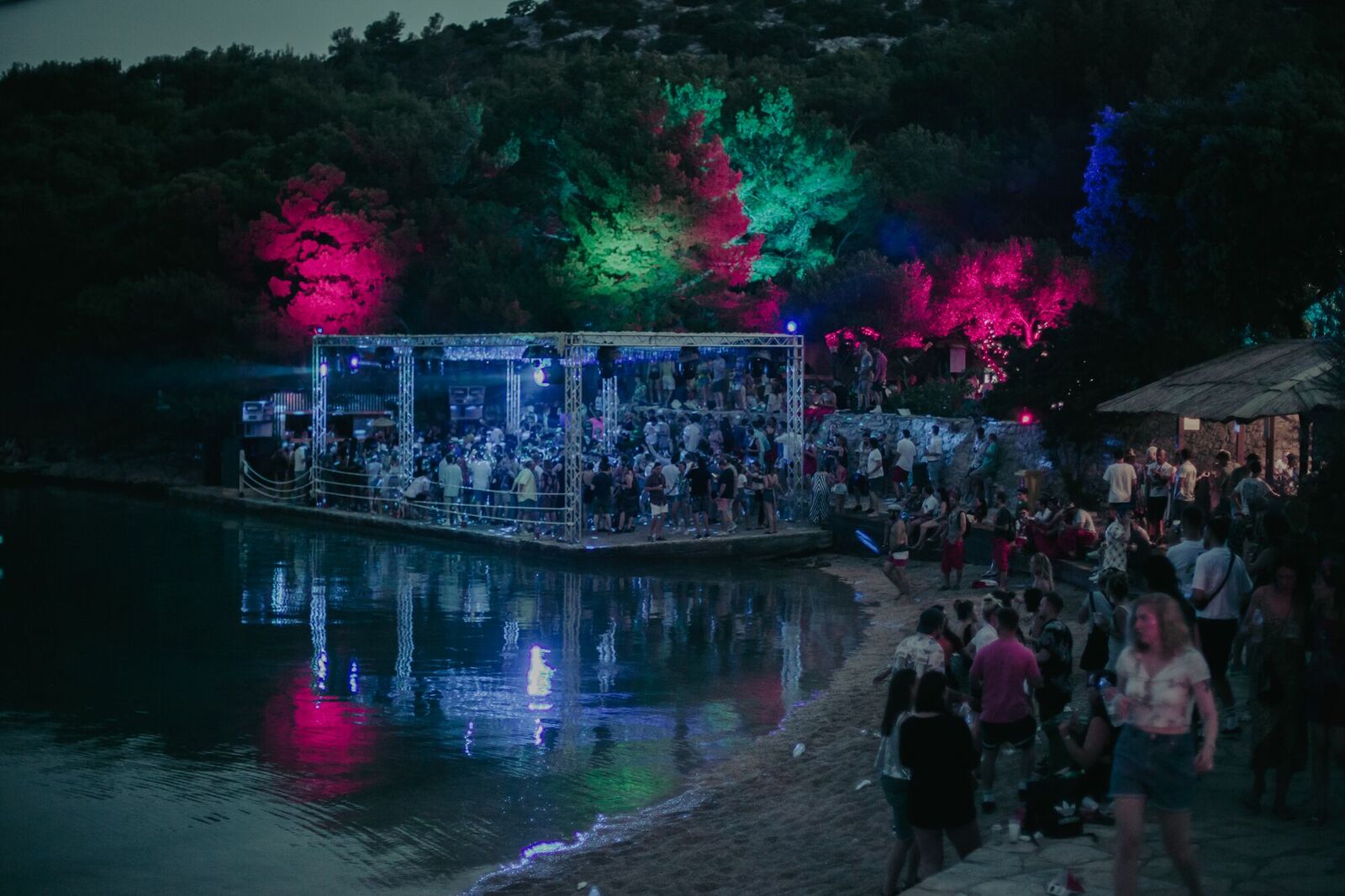 Iako smo na domaćem terenu, već pri ulasku shvaćamo da smo jedni od rijetkih “lokalaca”. Prolazimo kroz restoran s vlastitim stejdžemkraj mnogobrojnih barova i mjesta za kupiti hranu, pored Beach stejdža gdje već zagrijani festivalci odmaraju na plaži, uživaju u moru i zalasku sunca te zvukovima vesele house glazbe. U zraku je posebna atmosfera – organizatori žele održati osjećaj intimnosti festivala, stoga svi posjetitelji mogu biti bezbrižni, opušteni, srdačni i prijateljski nastrojeni. Festival, osim toga, nudi još dva velika stejdža, svaki sa svojim odličnim programom. Ambijent je predivan, dekoracije, disko kugle, svjetla i glazba uklapaju se savršeno i obećavaju čarobne rasplesane noći pod zvijezdama. Šetajući lokacijom pronalazimo i brojna mjesta predviđena za odmor, kao što su hammocki skriveni pod borovima iza Beach stejdža.
