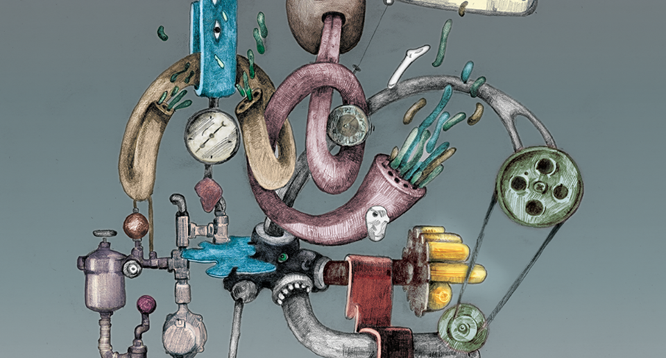 Zbog neumoljivosti i surovosti fundamentalnih bioloških procesa i ljudske potresenosti egzistencijalnim pitanjem smisla, još je od najranijih dana spoznavanja i refleksije, filozofiju pratila ideja dualizma – razapetosti, sukoba i napetosti između duha i tijela, strukture i kaosa, prirode i kulture, te u novijoj povijesti – čovjeka i stroja. Negirati ili čak ne promišljati, dinamiku takvog neprekidnog dijalektičkog kratkog spoja, u suštini znači odbacivati svu kompleksnost, silovitost i dramu inherentnu ljudskoj naravi i samom čovjeku. Mislim da i najbolja umjetnost, u posrednom i neposrednom smislu, grebe po toj podvojenosti bića, beskompromisno uranjajući u složene odnose suprotnosti. Već se iz pseudonima The Karmakumulator, jasno da iščitati sklonost prema takvoj koncepciji; u blago uznemirujućoj i bizarnoj kvaliteti naziva, sučeljava se karma, središnji religijski pojam na Dalekom istoku, s otkrićem sekundarnih galvanskih članaka u 19. stoljeću. Metafizički aspekt božanskog naspram praktičnog i svakodnevnog. Sveto i profano. Ideja i materija. Tome još svjedoči izvrsna i jako maštovito dizajnirana naslovnica Sunčice Fradelić – slojeviti prikaz antropomorfnog stroja neodoljivo evocira apstraktne radove legendarnog Vasilija Kandinskog, u nešto pojednostavljenoj, grubljoj formi, odražavajući sumornu realnost industrijskog sivila. Upravo je taj društveni kontekst industrijalizacije, središnji konceptualni i tematski motiv intrigantnog Karmakumulatorovog opusa. Nemilosrdna i gotovo spartanski hladna logika tehničkog i znanstvenog upravljanja iskovala je urbano tkivo i životni prostor ljudima u suvremenom društvu, postajući dominantna sila napretka i destrukcije, te kao takva, beskrajni predmet umjetničke fascinacije.