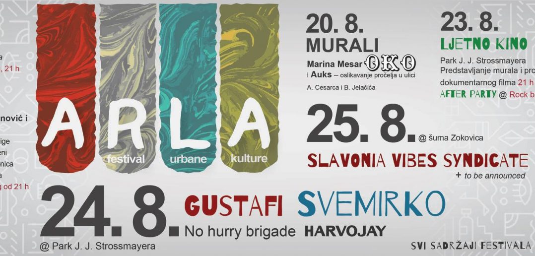Nastavljajući tradiciju i dobru praksu prethodnih udruga, organizacijske snage Udruge ove godine ponovo vam donose ARLA festival u sklopu programa Đakovačko ljeto 2018. Festival koji spaja urbanu kulturu i ono iskonsko u nama, kroz doživljaj prirode i zvuka, obiluje glazbenim, street art, književnim, edukativnim i filmskim sadržajima.