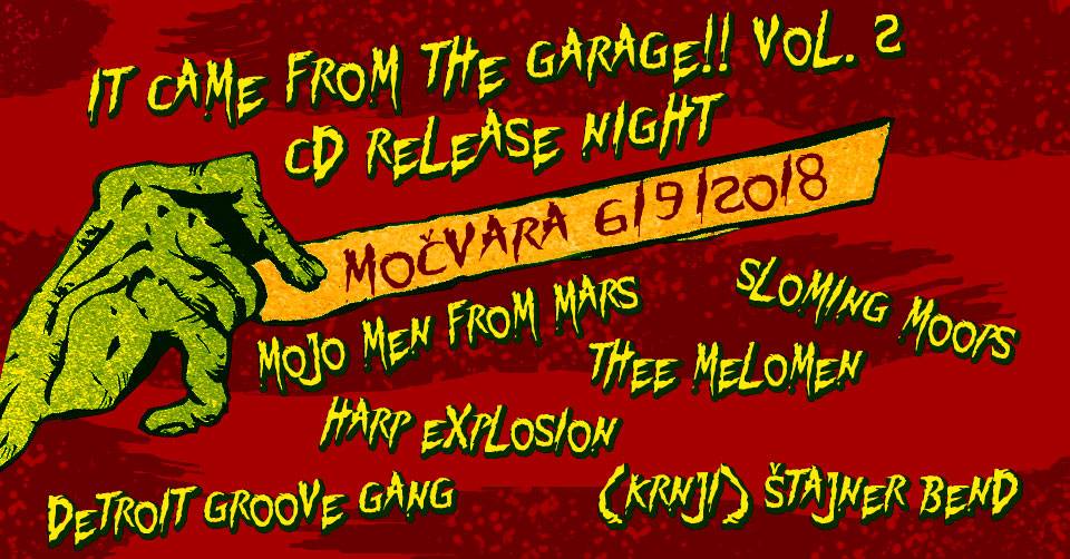 Po uzoru na izdanja „Bombardiranje New Yorka“ etikete Slušaj najglasnije te na slična inozemna (Back From The Grave, Slovenly Recordings…), drugo izdanje kompilacije „It Came From The Garage“ donosi 10 hrvatskih garažnih dragulja i jedan gostujući bend iz Njemačke. Kroz večer će zasvirati Mojo Men From Mars, Detroit Groove Gang, Thee Melomen, (Krnji) Štajner Bend