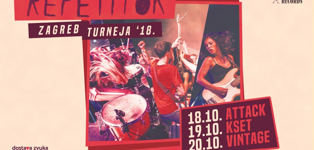 Beogradski garažni-postpunk-noise trio Repetitor održat će trodnevnu zagrebačku turneju na kojoj će u tri dana zajedno sa svojim fanovima napraviti kaos u tri kluba – 18. listopada Attack, 19. listopada KSET te 20. listopada Vintage Industrial.
