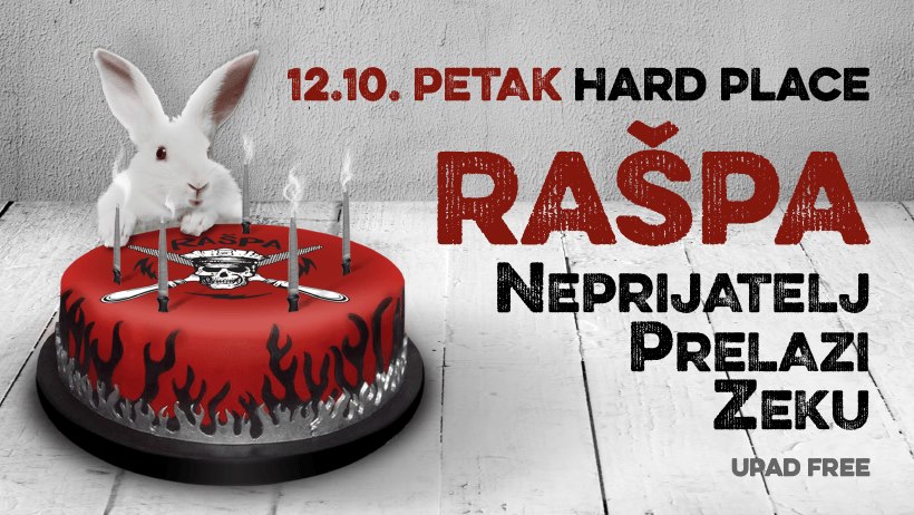 U petak, 12.listopada, Rašpa će u Hard Placeu obilježiti 5.godišnjicu, a slavlju će se pridružiti Neprijatelj prelazi zeku
