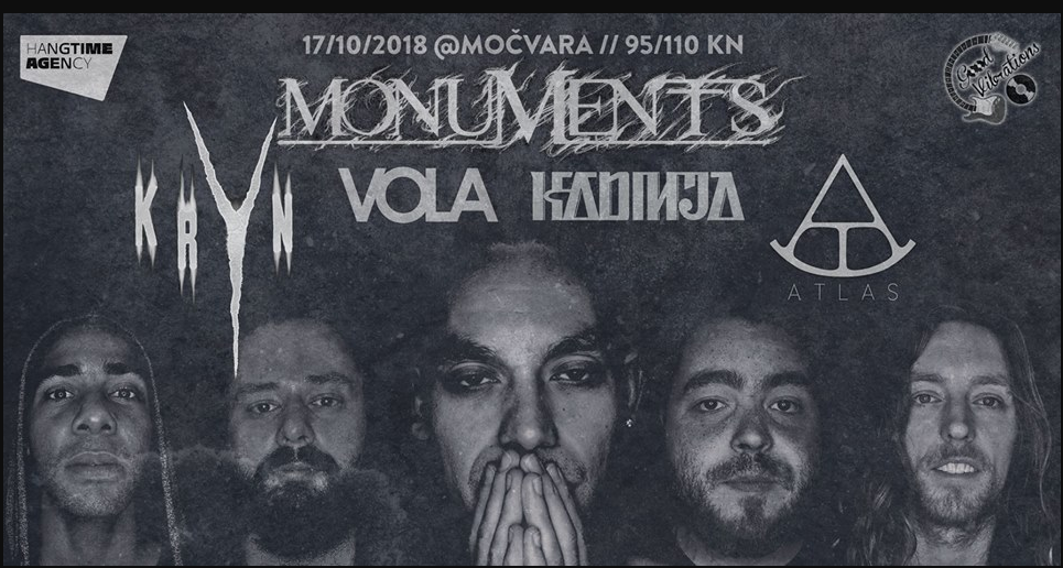 U sklopu nove Good Vibrations sezone, u zagrebačku Močvaru dolazi svirati eksperimentalni progresivni metal bend Monuments.