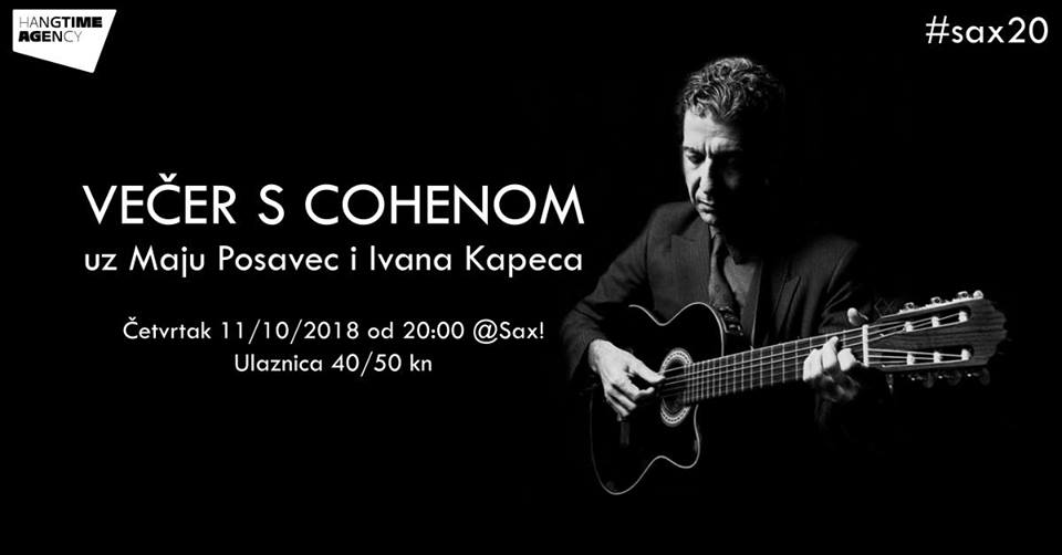 Svojevrsni hommage ovom nikad prežaljenom kanadskom „umjetniku ljubavi i smrti“ doživjet ćemo ovog četvrtka u Saxu. Nakon tri vrhunska koncerta, hit program „Večer s Cohenom“ moći ćemo ponovno vidjeti u sklopu jubilarne 20. sezone Saxa!
