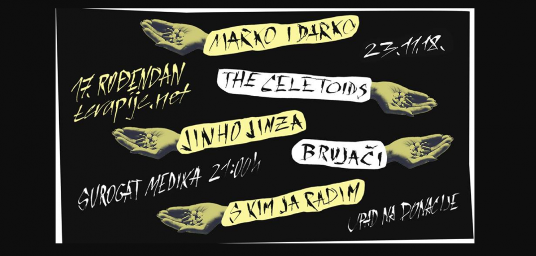 U petak, 23. studenog s početkom u 21 sat, džepni e-zine terapija.net organizira koncert povodom 17. rođendana djelovanja portala, uz glazbeni program kojeg čine punk-blues duo Marko i Darko, garage punk trojac The Celetoids, blueseri Jinho Jinza, zagrebački avangardi Brujači te grupa S kim ja radim, koju istovremeno čine i neki od članova portala.