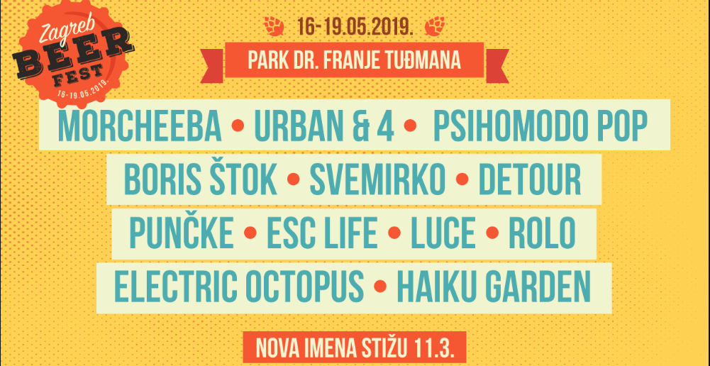 Morcheeba, Psihomodo Pop, Svemirko, Haiku Garden, ESC Life i Punčke nova su glazbena imena trećeg Zagreb Beer Festa koji će se održati od 16. do 19. svibnja 2019. u Parku Franje Tuđmana u centru Zagreba.