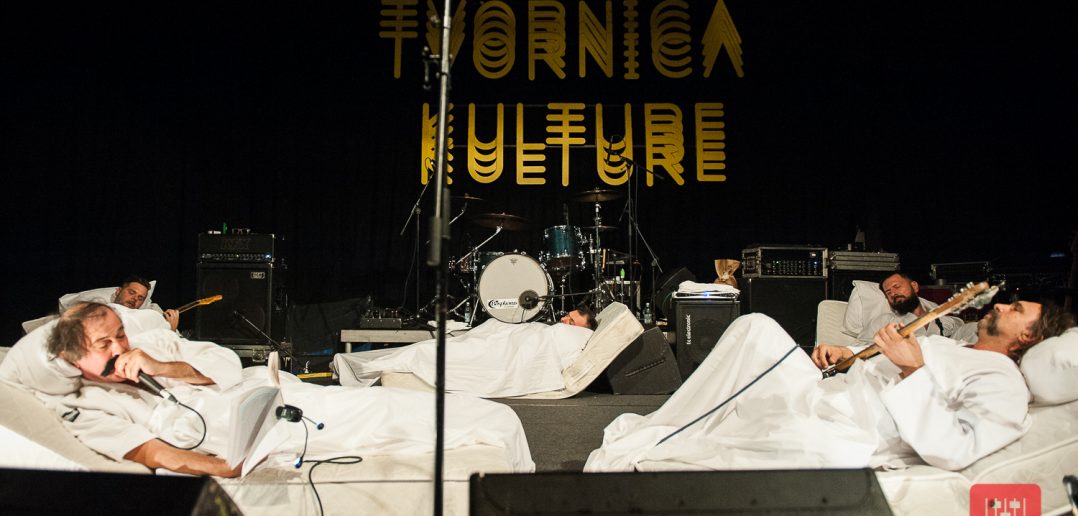 Točno u 21 sat na pozornici ispred crnog zastora mogli smo vidjeti dva madraca na kojima su ležali Zoran Prodanović-Prlja i Damir Martinović-Mrle vjerovali ili ne spavali pola sata. U cilju da se probudi svijest oko klimatskih promjena, Let 3 je probudio našu svijest spavanjem, da dobro ste pročitali. Nakon pola sata laganog sna, Prlja i Mrle se bude i iz svojih kreveta započinju pjesmu Veliki dan. Između pjesama, iz svog udobnog ležaja Prlja je publici čitao izrazito senzualne ulomke iz erotske knjige dok je Mrletov bas služio kao glazbena podloga “uzbudljivim” tekstovima. Kako su i bili najavili, osim pjesme Veliki dan, u dijelu koncerta “iz kreveta” mogli smo čuti još fantastičnu pjesmu Mornar, Viola, Ja Bih Se Ljubio i Artemida. Nakon laganog i sanjivog dijela došlo je vrijeme za buđenje, dok su se Prlja i Mrle dizali crni zastor se podigao i mogli smo vidjeti cijeli bend koji je započeo pjesmu 21st Century Schizoid Man na koju se nadovezala kultna Vjeran Pas tijekom koje je ugodno popunjena Tvornica Kulture eksplodirala.