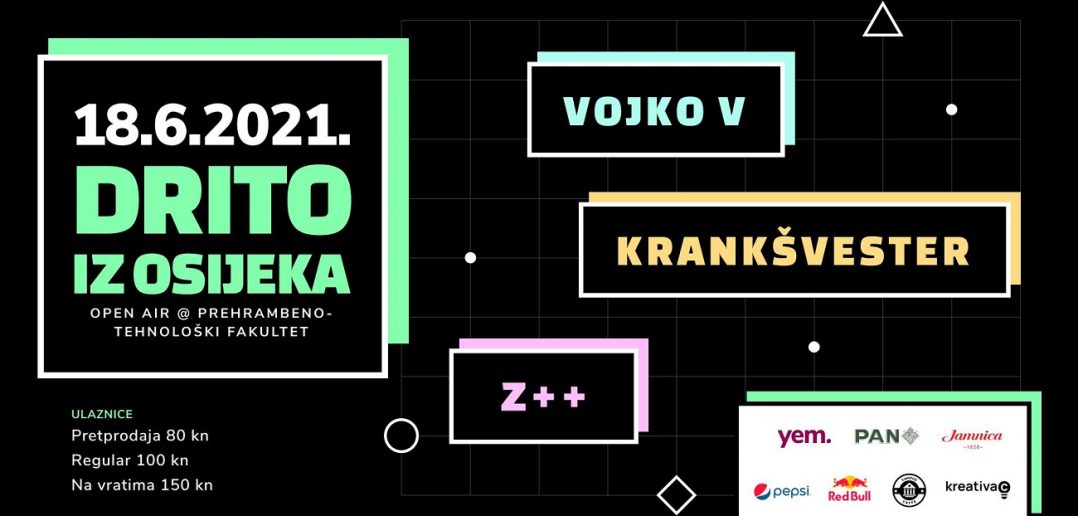 Drito iz Osijeka održat će se u dvorištu Prehrambeno-tehnološkog fakulteta 18. lipnja, a predstavljat će ga Vojko V i domaće snage Krankšvester i Z++.