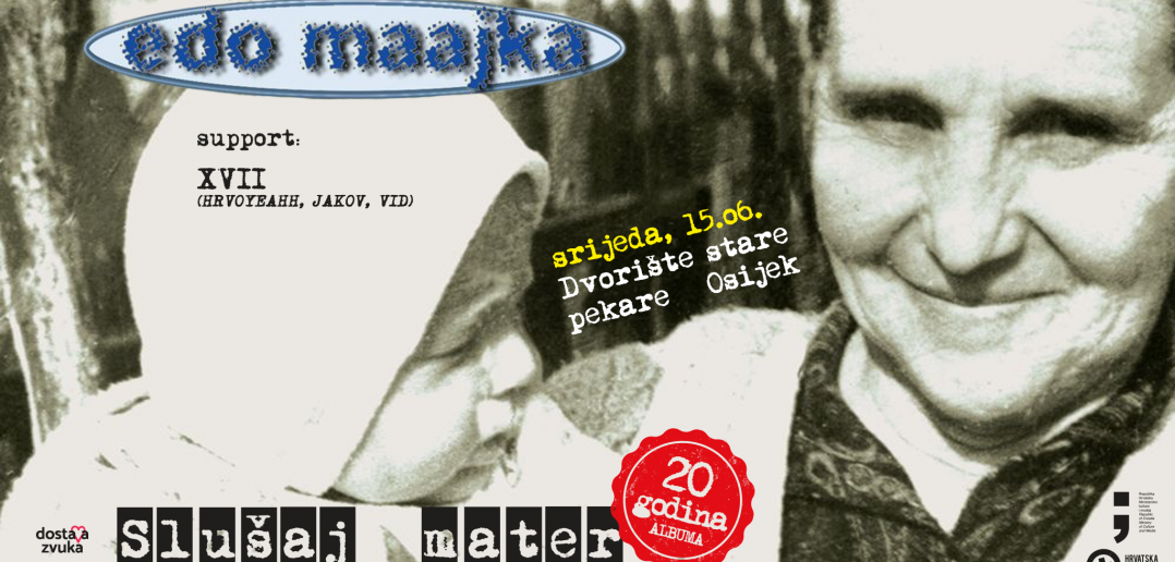 Zbog nepovoljne vremenske prognoze i najavljenih padalina odgađa se najavljeni koncert Ede Maajke, koji se trebao održati ovog petka u dvorištu stare pekare u Osijeku, u sklopu proslave dvadeset godina od izlaska albuma „Slušaj mater”. Novi termin održavanja je zabilježen za srijedu, 15. lipnja, na istoj lokaciji.