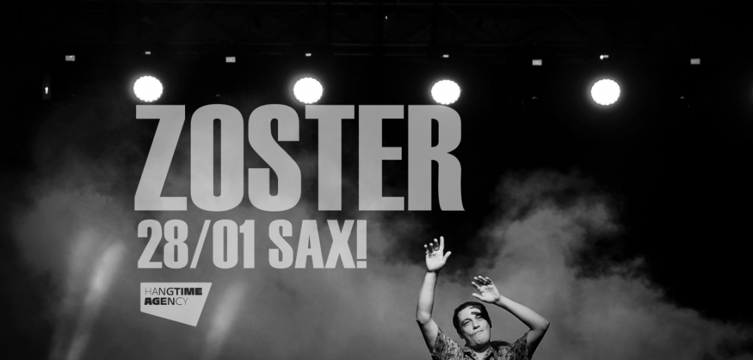 Zoster nastaje u jesen 2000. godine na inicijativu Marija Knezovića i Dražana Planinića. Naziv Zoster nastaje nakon što je Mario prebolio herpes zoster, virus koji živi u ljudskom tijelu, a prilikom pada imuniteta, manifestira se na površini kože u vidu osipa i vremenom se širi, a grupa Zoster je nastala kao posljedica pada imuniteta društva. Grupa Zoster iza sebe ima četiri studijska albuma koja možemo podijeliti u dvije faze prema zvuku i poetici. Prvoj fazi pripadaju albumi “Ojužilo” i “Festival budala”, a drugoj “Imači kada” i “Srce uzavrelo”. Prvu možemo nazvati mladalačkom i studentskom fazom i po poetici i angažmanu, dok je druga faza zrelija (što je logično zbog samog protoka vremena i iskustva i znanja koje je stečeno), introvertnija, pa i mračnija. Bend je prije dvije godine potpisao ekskluzivni ugovor s Croatia Recordsom za izdavanje svog petog albuma Najgori koji je sniman u Muzičkom centru Pavarotti u Mostaru i također mostarskom studiju Baraka. Na albumu će se naći 10 pjesama uključujući i dosad objavljene singlove “Kuda idu svi ti ljudi”, “Treba mi keš” i “Čovjek želi da je ptica”, a spomenute će se sigurno moći čuti i ovom prilikom u Saxu!