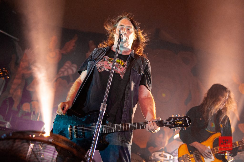 Drugi dan je, nećemo se lagati, ono što nas je privuklo na sam festival. Line up su otvorili domaće snage Malady Lane, a koncert dana se spremao u pozadini. Za mene osobno je to bend čija me pozicija u danu pomalo iznenadila, oko 19h se na binu popela britanska šestorka obučena u bijelo. Church of the Cosmic Skull su učinili da budu zapamćeni od prvog trena na pozornici. U bijelim odijelima otvorili su dugim uvodom u “Mountian Heart” koja otkriva njihovu posebnost – vokalne harmonije pomiješane sa specifičnim zvukom benda i teatralnim nastupom. Na sat vremena su nas transportirali u zvuk koji oni najbolje opisuju kao spoj ABBA-e i Black Sabbatha. Dok su istovremeno rasplesali publiku koja se samo povećavala tijekom nastupa jednako tako su nas naveli da s njima zapjevamo poznatu “Everybody’s going to die” uz dramatičnu stanku i publiku koja traži još. Bio je to takav nastup da nisam mogao ne otići u backstage, čestitati im na izvrsnom nastupu i potaknuti ih da se vrate u Hrvatsku prvom prilikom.