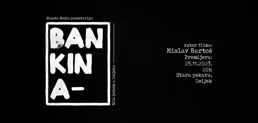 Udruga Mixeta Media organizira premijeru glazbenog dokumentarnog filma „Bankina“ – filma o osječkoj alternativnoj glazbenoj sceni i događaju koji je na jednu večer tu scenu ujedinio. Film će se premijerno prikazati 25.11.2023. s početkom u 20 sati u velikoj konferencijskoj dvorani osječke Stare pekare (Trg Vatroslava Lisinskog 1).