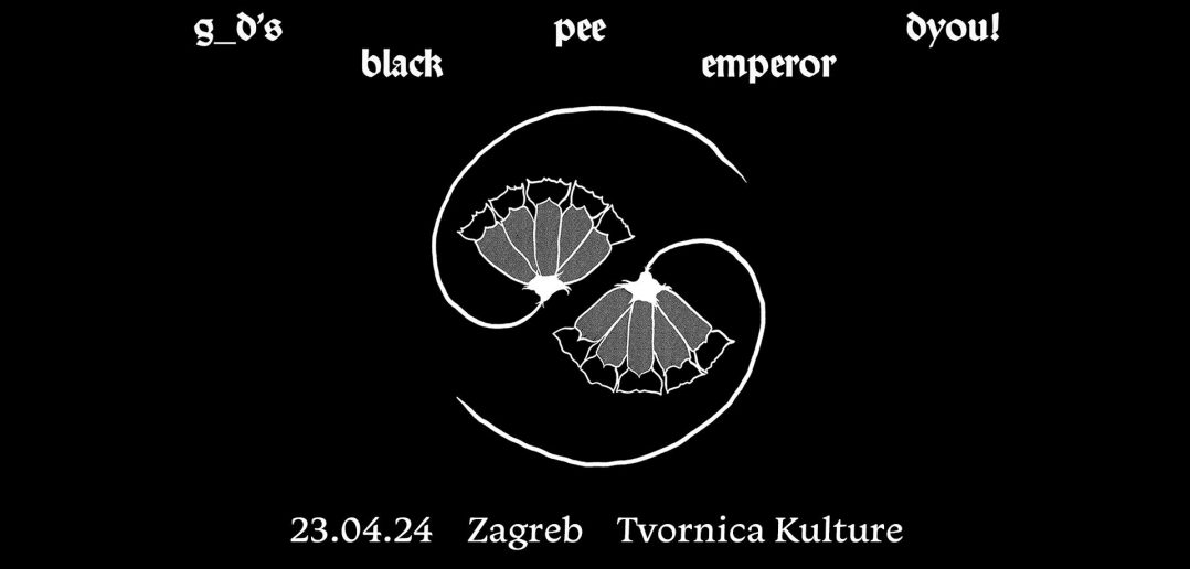Jedna od najautentičnijih glazbenih pojava 21. stoljeća., kanadski Godspeed You! Black Emperor, na svom će trećem zagrebačkom koncertu predstaviti izvrstan zadnji album „G_d’s Pee at State’s End!“, objavljen u travnju 2021. u osvit virusne pandemije koja je njegovu europsku promociju odgodila za više od 2 godine.