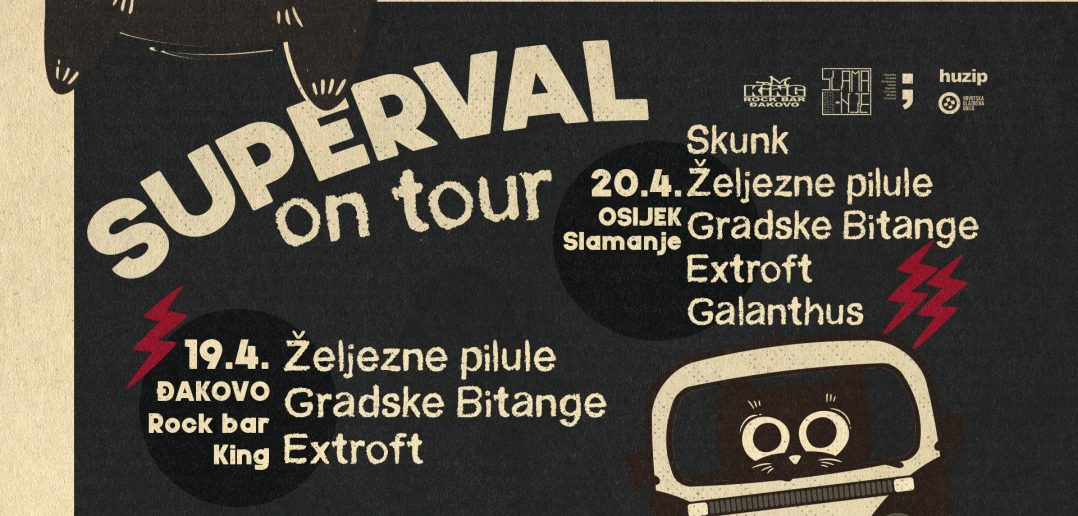 Nakon nastupa u Čakovcu, Koprivnici, Šibeniku i Dubrovniku Superval nastavlja turneju po Hrvatskoj. Idući su na redu Đakovo, gdje će se 19. travnja predstaviti Željezne pilule, Gradske Bitange i Extroft te, dan kasnije, Osijek u kojem će zasvirati Željezne pilule, Gradske Bitange, Extroft, Galanthus i Skunk.