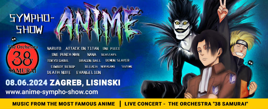 Konnichiwa svim ljubiteljima japanske animacije, kulture, i naravno, glazbe! Glazba, japanska glazba! Orkestar 38 SAMURAI želi vas vidjeti na zadivljujućem vizualnom spektaklu “Anime Sympho-Show”, koji će se održati u sklopu njihove europske turneje 2024. u Lisinskom 8. lipnja.